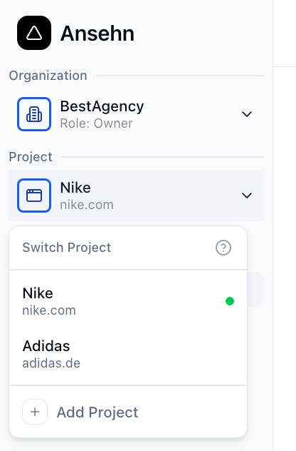 You can now add multiple projects to your Ansehn organization. Ideal for companies monitoring several domains or agencies managing multiple clients in one place.